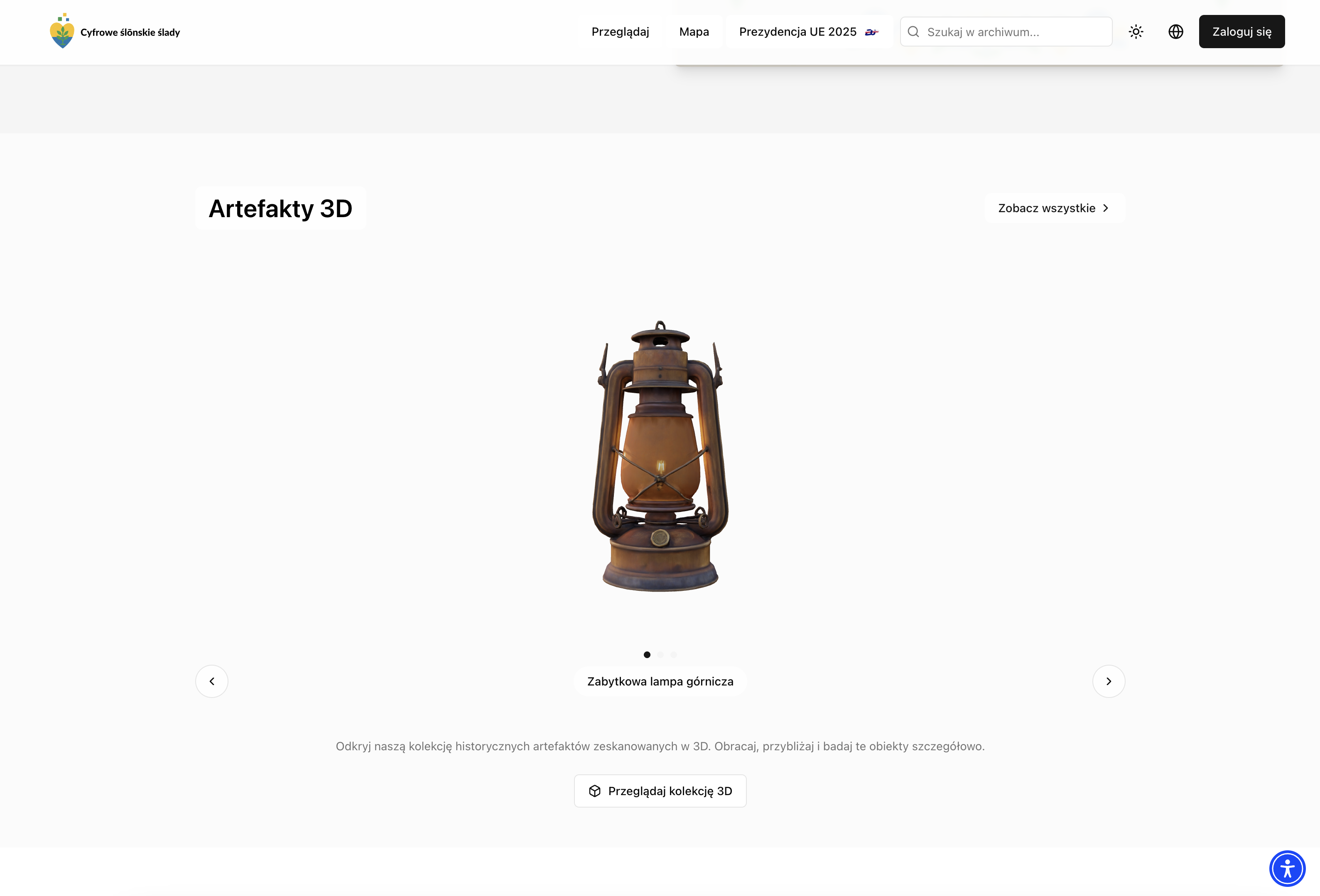 Platforma do zachowania i udostępniania dziedzictwa Śląska: kolekcje zdjęć i dokumentów, nagrania audio/wideo, interaktywna mapa oraz artefakty 3D.