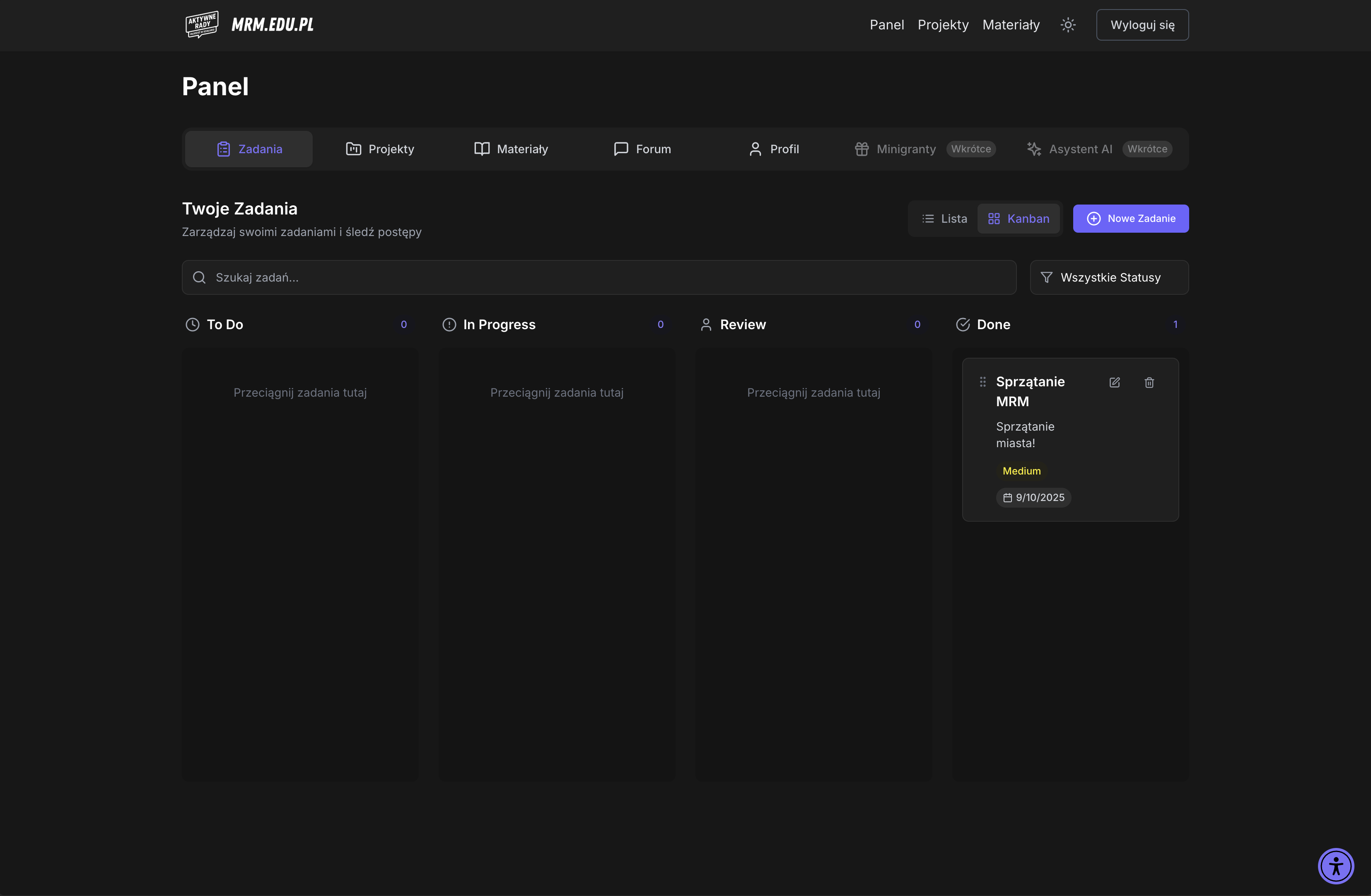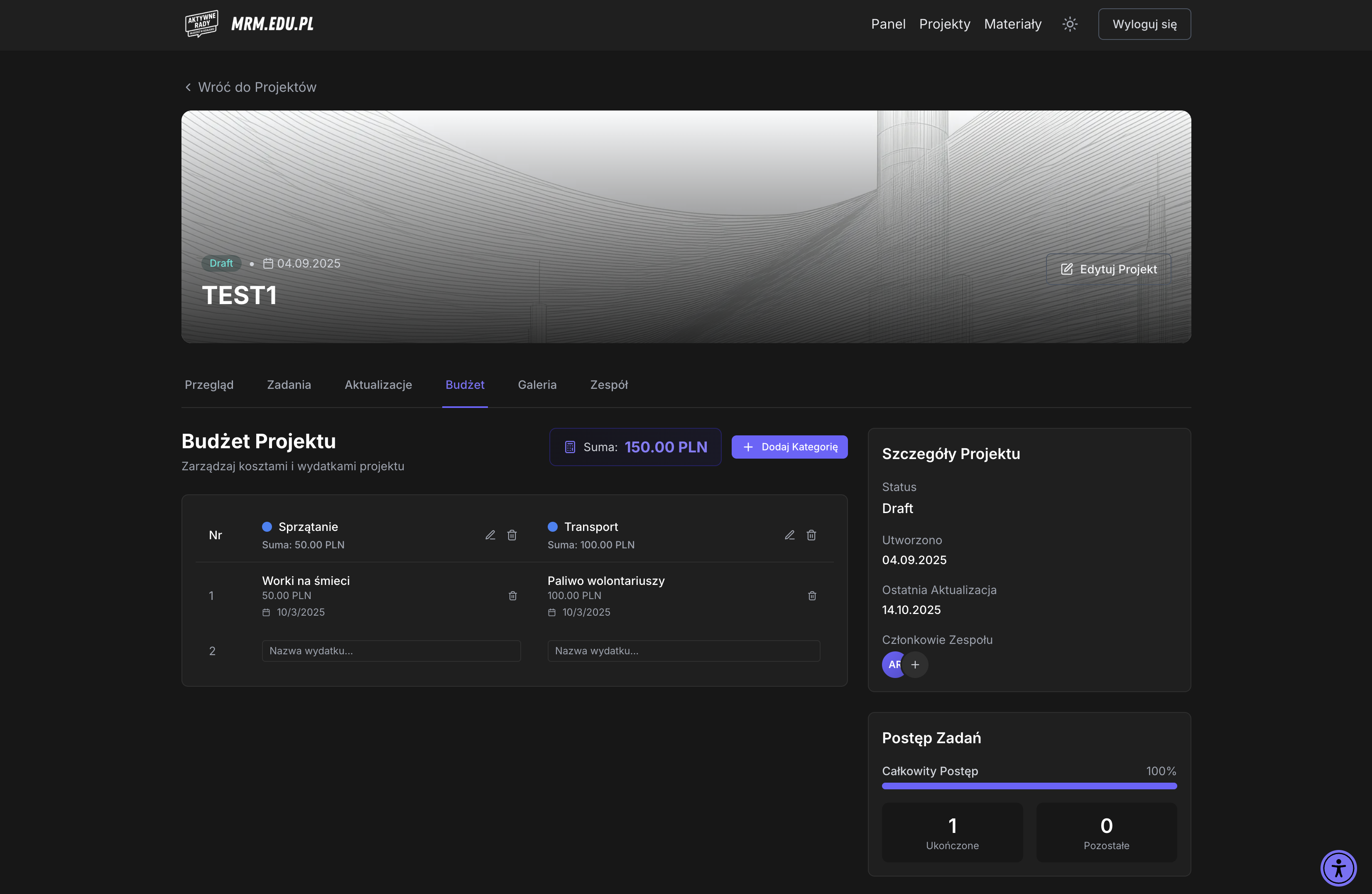 Aplikacja webowa dla młodzieżowych rad – logowanie, zarządzanie projektami, budżety i współpraca.